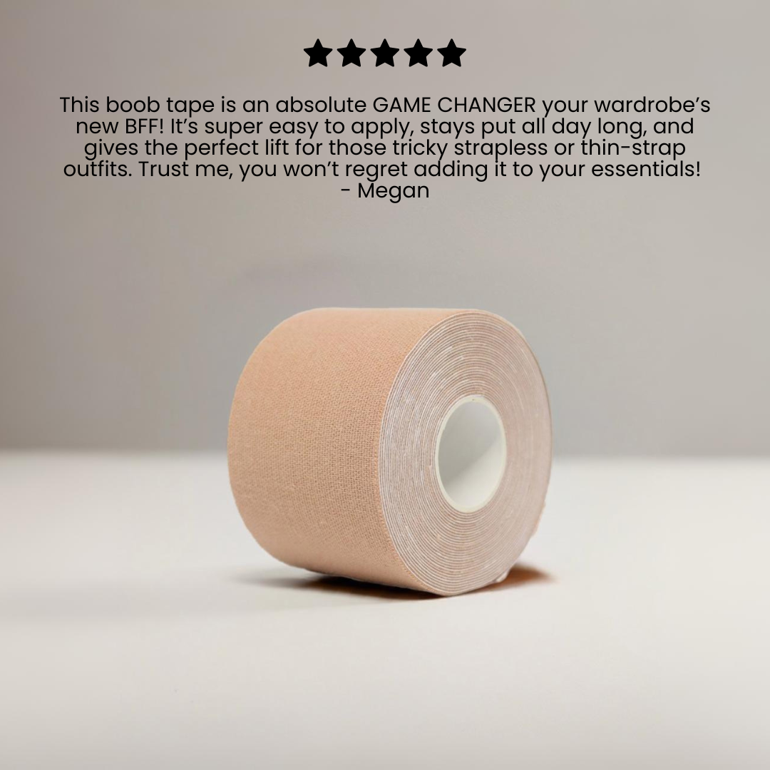 This boob tape is legit. I wore it under a strapless dress for a wedding and was honestly shocked at how secure it felt- no slipping, no peeling off halfway through the night (even after dancing & sweating). It gave me lift without that stiff, uncomfortable feeling. Plus, it didn’t irritate my skin like others I’ve tried. Definitely keeping a roll handy for every event now.